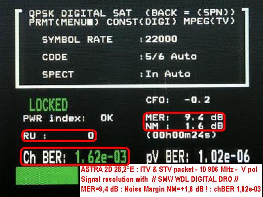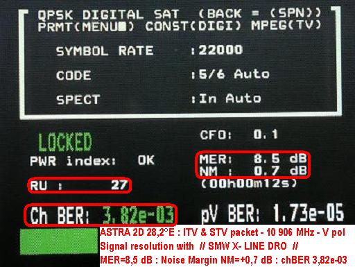 ACCOMPLISHMENT : In the same satellite Astra 2D , in the same frequency f=10 906 MHz - packet ITV & STV - with same RX prime focus 240 cm I REACH UP GROWING SIGNAL QUALITY MORE THAN 0,9 dB Modulation Error Rate WITH SMW WDL DIGITAL COMPARED WITH SMW X-LINE !!! APPARENTLY IN THE UNAOHM EP 3000 TEST REPORTS .