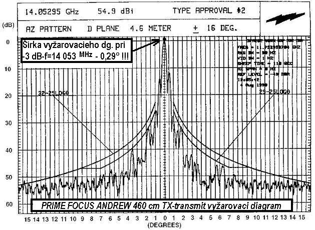 V prvom rade Vám odporúčam nie ofsetový typ ale stredový typ antény z elementárneho dôvodu,lebo prax potvrdila teoretický predpoklad že stredové typy antén majú v porovnaní s ofsetovým tvarom reflektora užší vyžarovací diagram - viď . ANDREW 460 cm TX DIAGRAM v nasledovnej FOTOGALÉRII - pri poklese zisku o 3 dB,pri rovnakej frekevcii "f",za predpokladu reciprocity RX-TX antény,čo podstatne zjednodušene vysvetlené môžem pomenovať nasledovne :