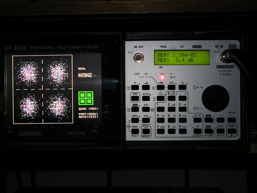 BBC 1 EAST Astra 2D 10 847 MHz V pol SIDELOOB EAST EUROPE detail z MPEG2 karty UNAOHM EP 3000 EVO DIGITALb 8 transponderov vo V pol MARK 1 10 729 MHz MARK 2 10 936 MHz z analyzovaneho spektra v UNAOHM EP 3000 EVO DIGITALc QPSK konstelacny diagram MER 9,4 dB a BER 1,38e 03 co je plna signalna rezerva viac ako 2,5 dB BBC 1 EAST Astra 2D 10 847 MHz V pol SIDELOOB EAST EUROPE UNAOHM EP 3000 EVO DIGITAL