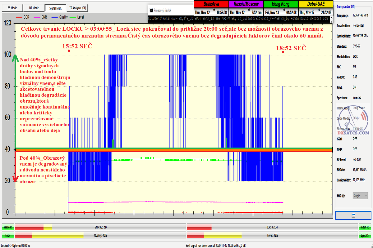 že počas celého signálneho monitoringu neklesol odstup C/N pod úroveň 6,6 dB.Tento výsledok príjmu nepopierateľne súvisel