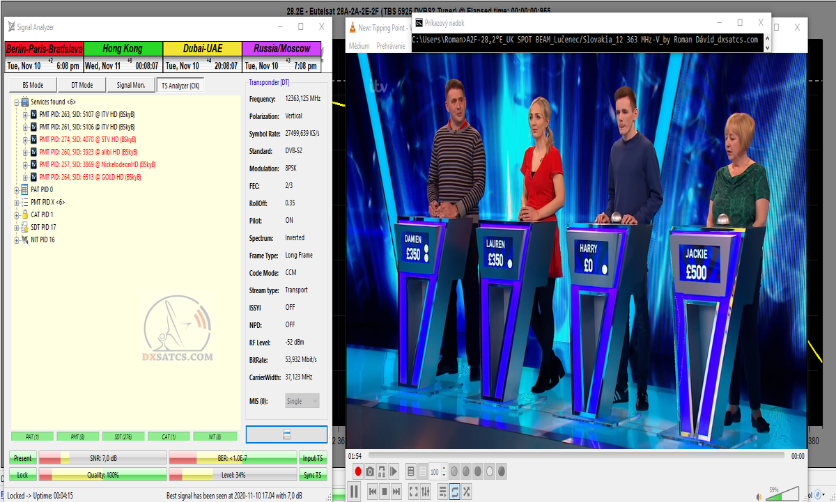 ►Obrazová a video demonštrácia príjmu z f=12 363 MHz v Lučenci : Sky Uk
