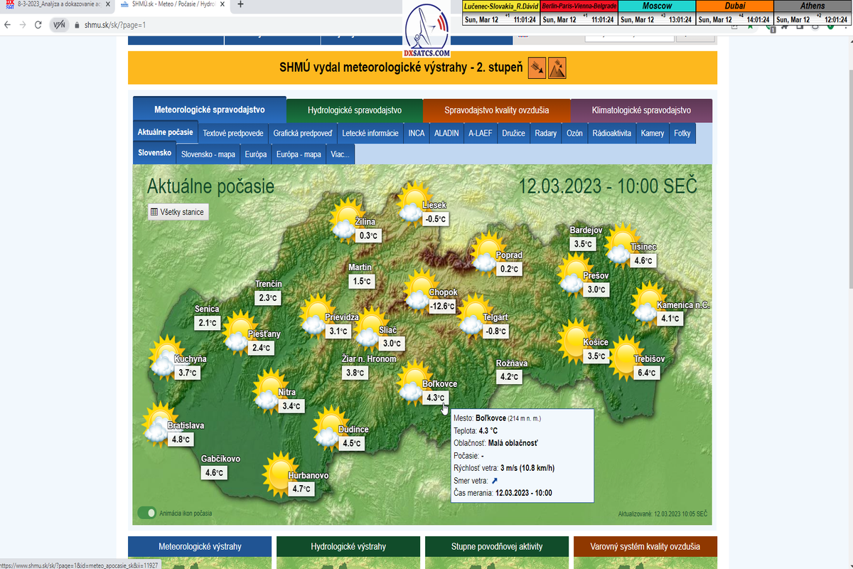 Začiatok signálneho monitoringu dňa 12.3.2023 o 10:57:30 SEČ a aktuálna poveternostná situácia
