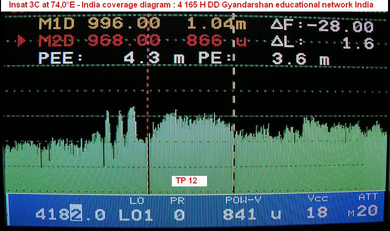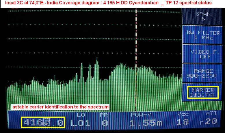 Update - Insat 3C at 74,0°E - India coverage : 4 165 H DD Gyandarshan network _ TP 12 spectral status