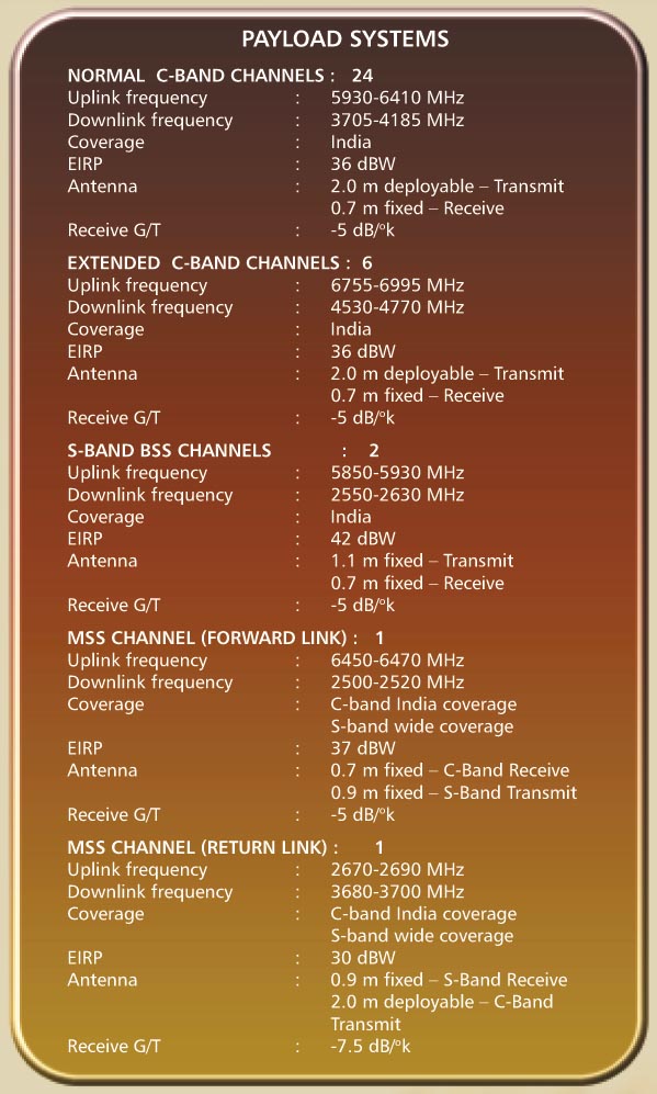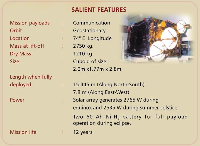 Insat 3C at 74.0E C band salient featuresInsat 3C at 74.0E C band payload systemsInsat 3C at 74.0E C band mission sequence