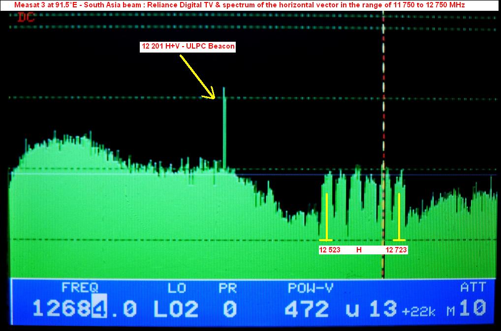Measat 3 at 91.5°E-Reliance Digital TV : identification of the satellites in orbit by ULPC Beacon -f-