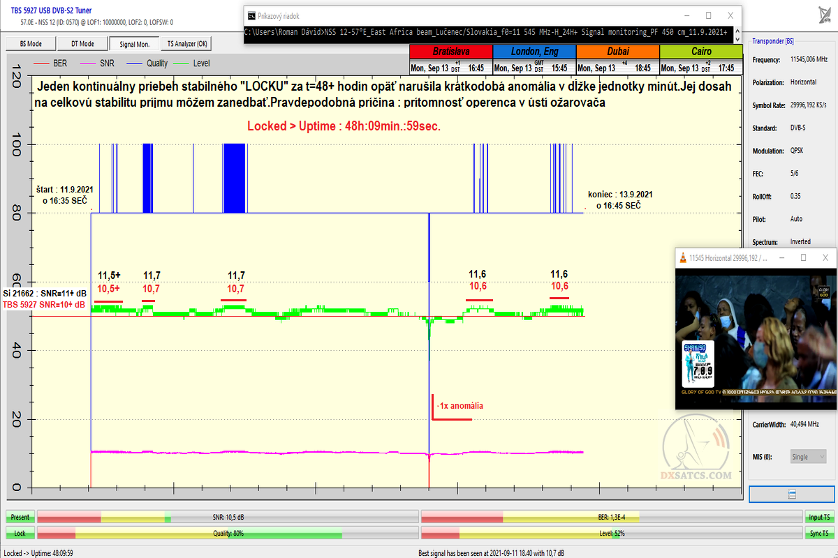 f0=11 545 H Ethiosat : v okamihu vypnutia dosahovala kvalita príjmu takmer SNR=13 dB_dôkaz je v monitoringu