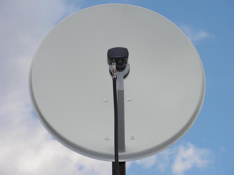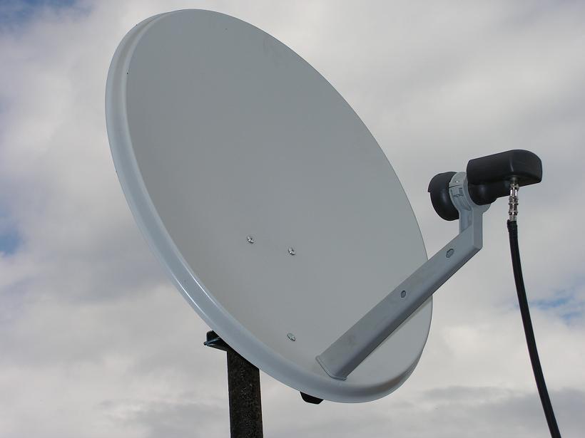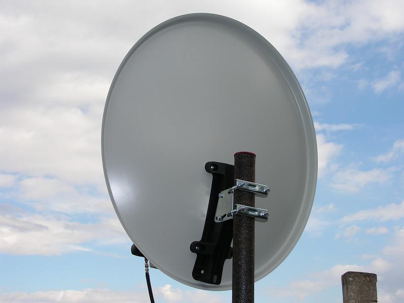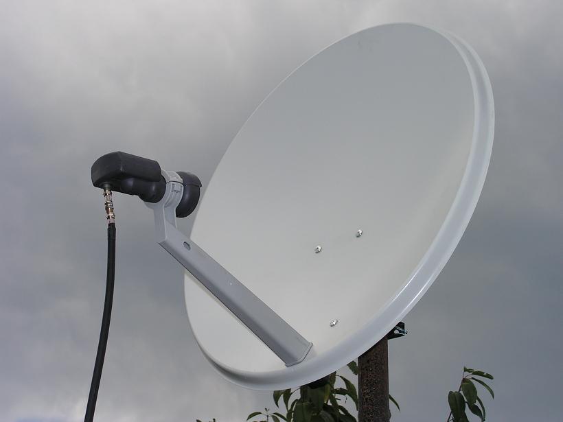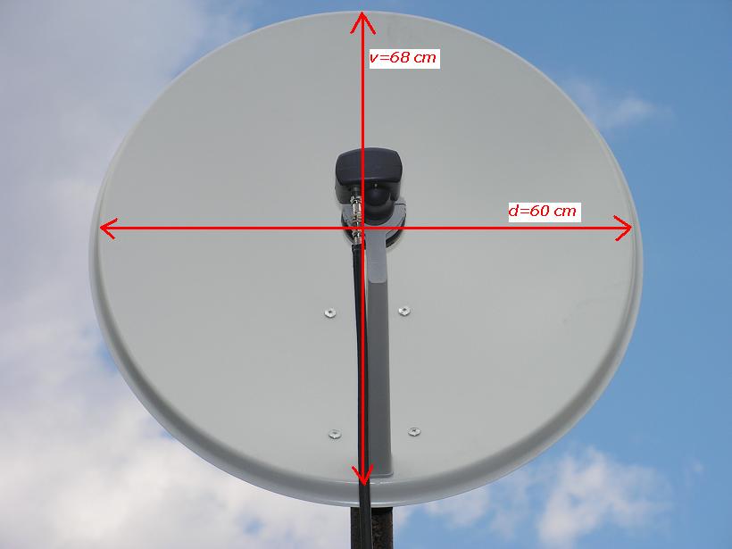 PREDSTAVENIE TALIANSKEJ OFSETOVEJ ANTÉNY EMME ESSE S ROZMEROM 68/60 cm VO FIXNOM UCHYTENÍ S KONVERTOROM INVACOM SNH 031.