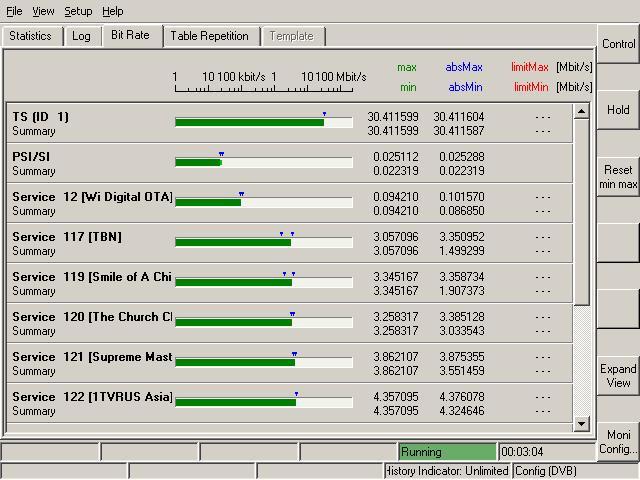 ABS 1 at 75.0°E-southern beam : 12 579 H ABS network / transport stream table / bit rate