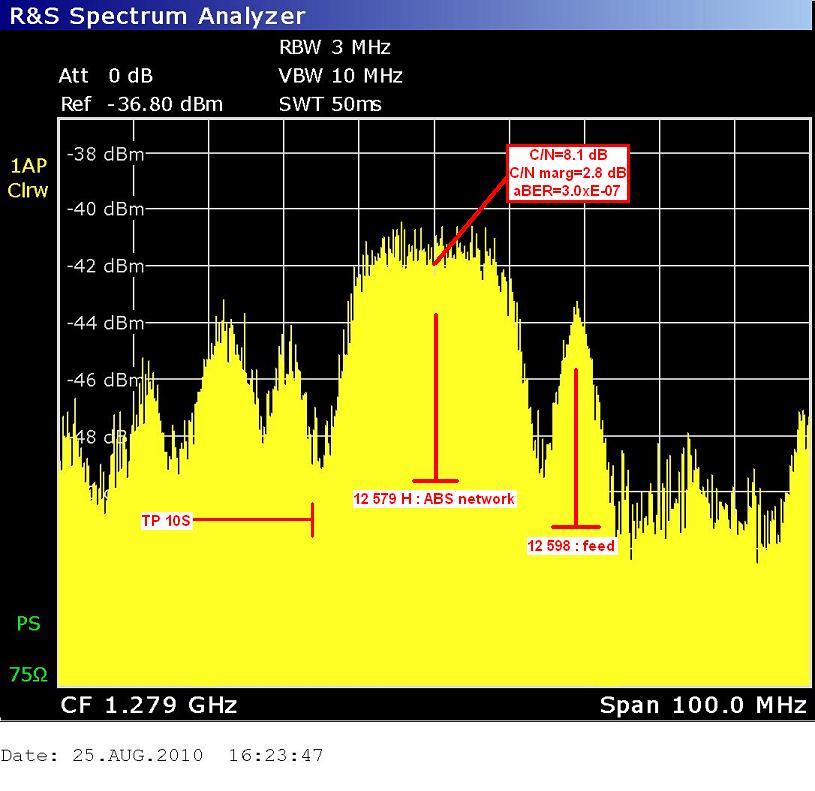 ABS 1 at 75.0°E-southern beam in KU band : 12 579 H ABS network / spectral analysis