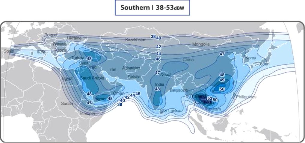 ABS 1 at 75.0°E : installed system ABS 1 at 75.0°E footprint ABS 1 at 75.0°E : measurement point