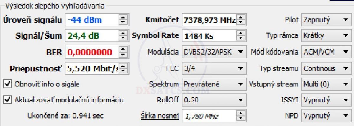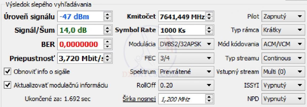 elm. vlnení vo frekvenčnom spektre od 7250 do 7 750 MHz a publikovaniu modulačných parametrov niektorých dátových paketov,